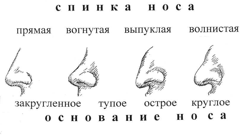Согласно его исследованию выделяют 8 основных видов форм человеческого носа, а именно: