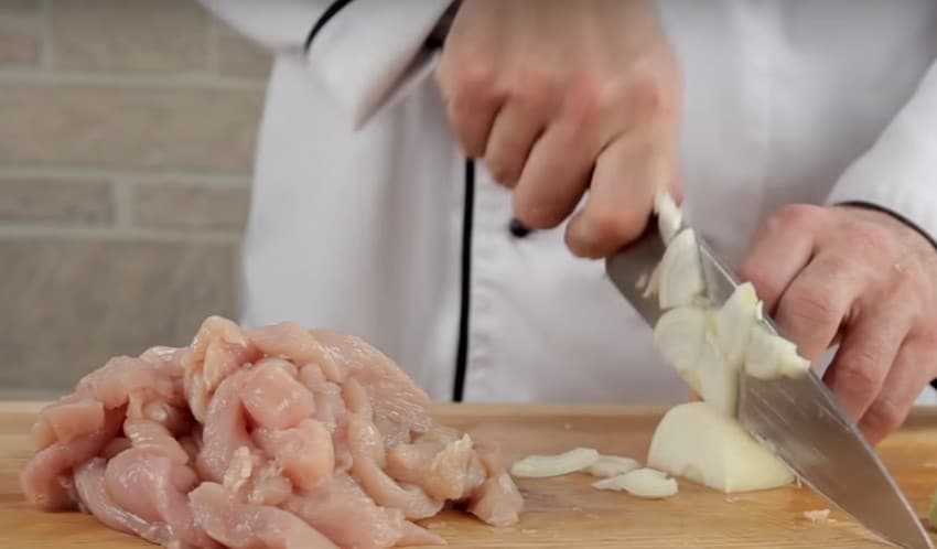1. Филе промойте, просушите и нарежьте небольшими брусочками.