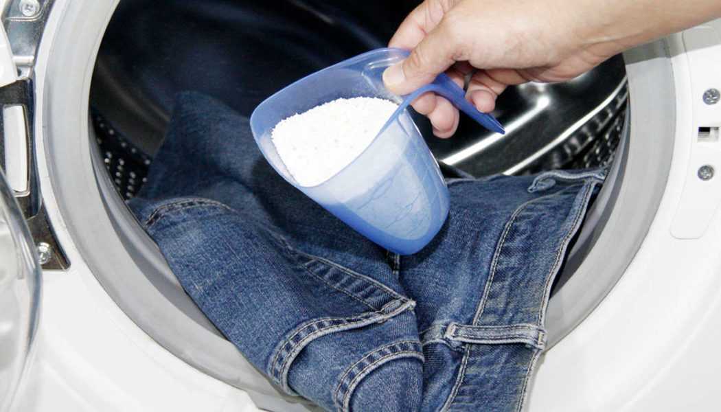 Стирать такую ткань желательно жидким моющим средством, либо использовать капсулы для стирки. Джинсовую ткань очень сложно выглаживать. Желательно при стирке добавлять кондиционер для белья. Нельзя использовать порошок, в котором содержится отбеливатель, например, хлор. Джинсы легко выцветают, линяют и теряют цвет, поэтому лучше использовать нейтральный, предназначенный для деликатной стирки или детский порошок.