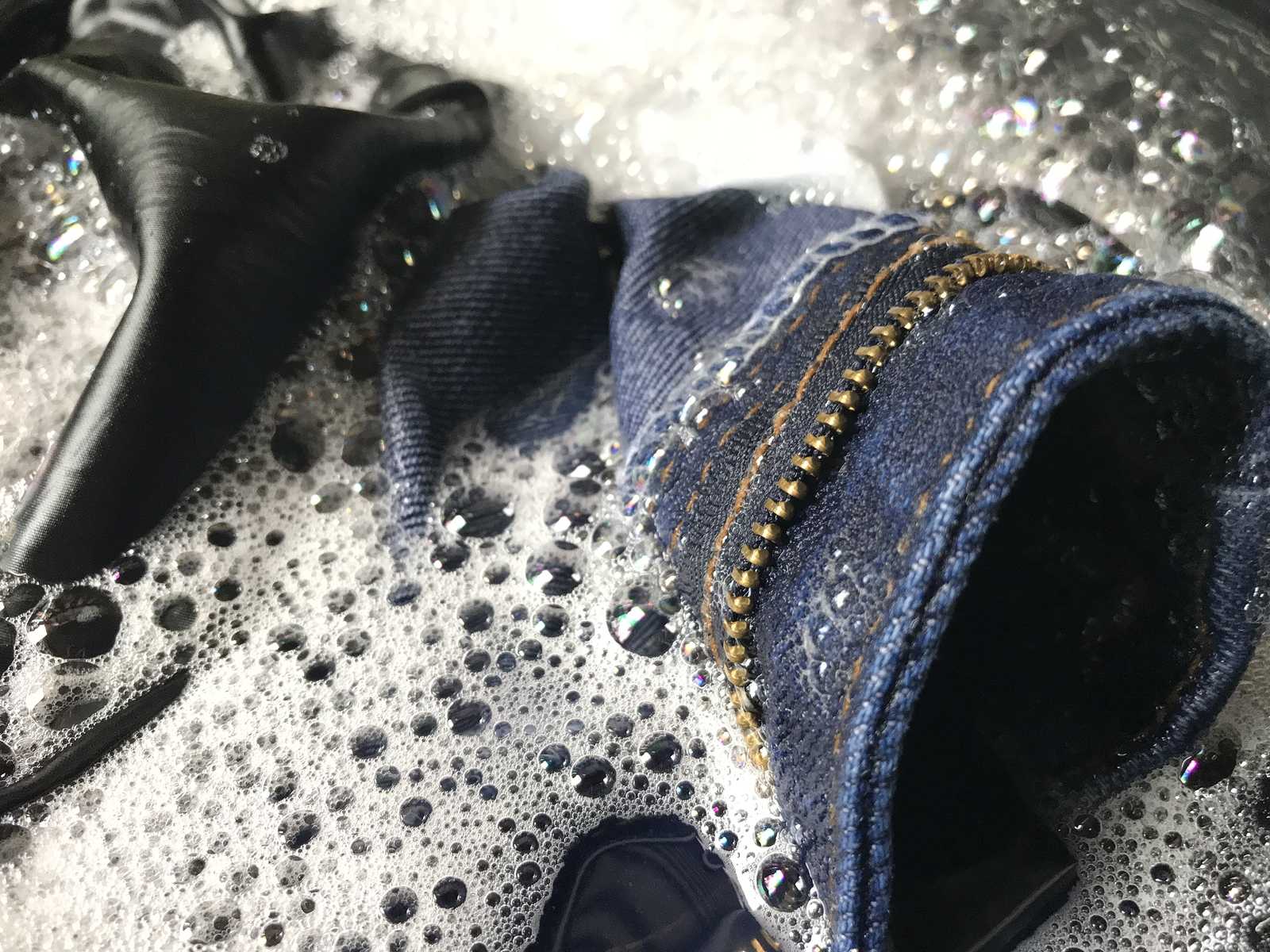 Несмотря на то, что джинсы — это очень плотная ткань, изначально предназначенная для рабочих, стирать их следует исключительно в деликатном режиме, если используется стирка джинсов машинным методом. По возможности чистить джинсы нужно вручную, однако деликатный или ручной режим в машинке также справится с поставленной задачей.