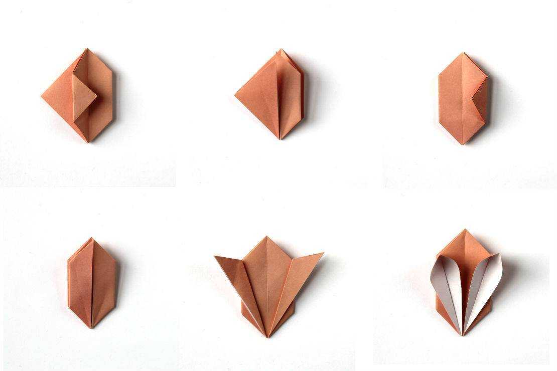 - Переворачиваем заготовку. Внешние углы складываем вверх вдоль центральной линии. Получаем ромб.