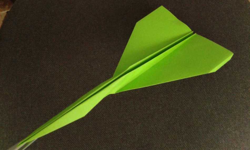 Существует еще один не менее интересный способ создания быстрого самолета из бумаги, но 100 метров он вряд ли пролетит. Данную поделку получится смастерить довольно легко: