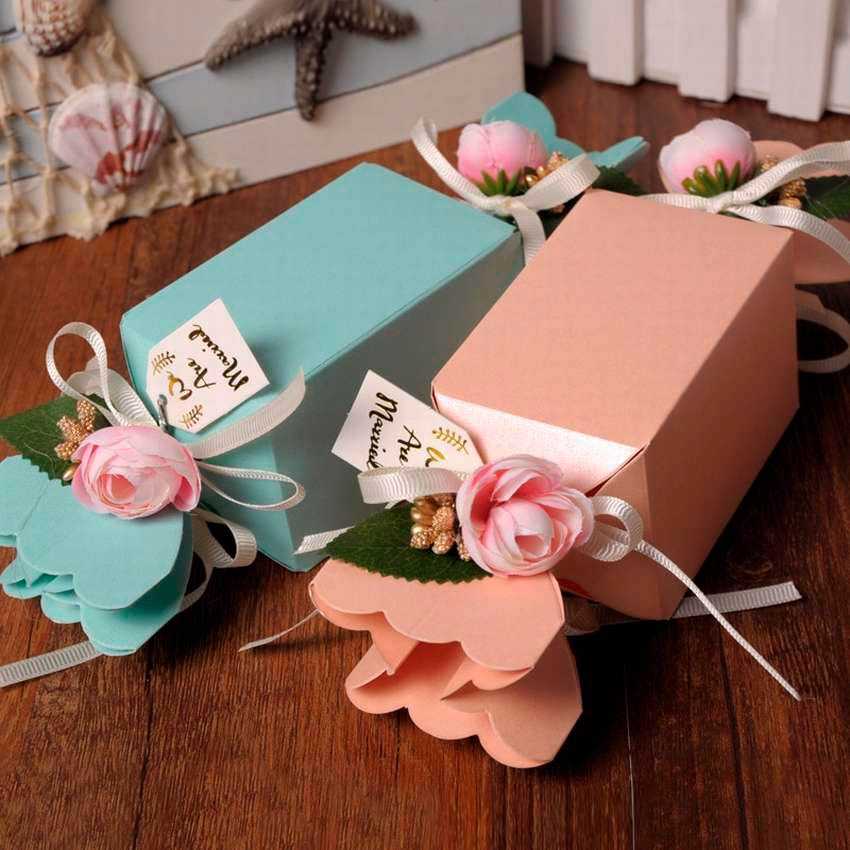 Очень празднично выглядят конфеты, задекорированные цветами, листочками, бусинами для скрапбукинга.