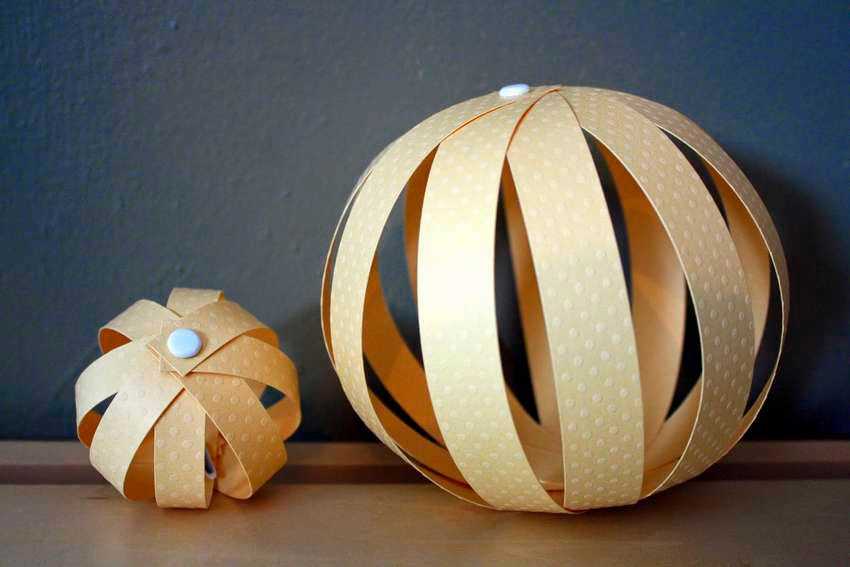 Для начала режут из плотного картона 11-15 полосок шириной 4 см, длиной 30 см. Соединяют их в форме шара с помощью крепёжного фиксатора или сшивают иглой. Набивают сладостями, ставят в середину белого листа, стороны собирают вместе.