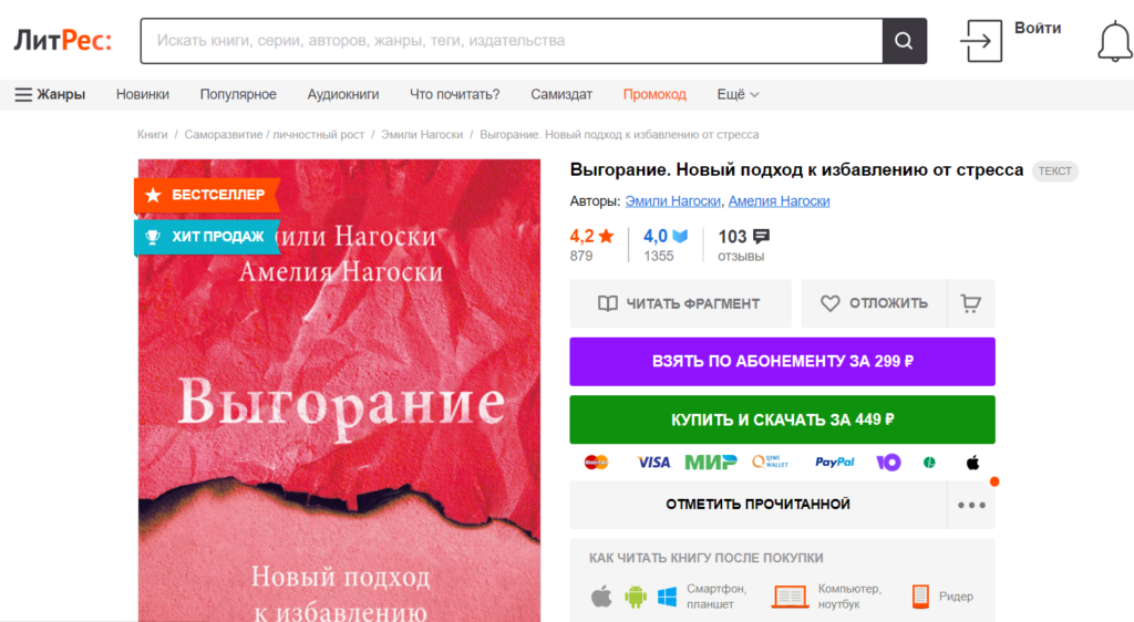 Описание книги: Эмили Нагоски и ее сестра Амелия обращаются к теме выгорания у женщин. В попытках соответствовать стандартам внешности и поведения, повсюду успевать и быть при этом милыми женщины попадают в замкнутый круг бесконечных стрессов.