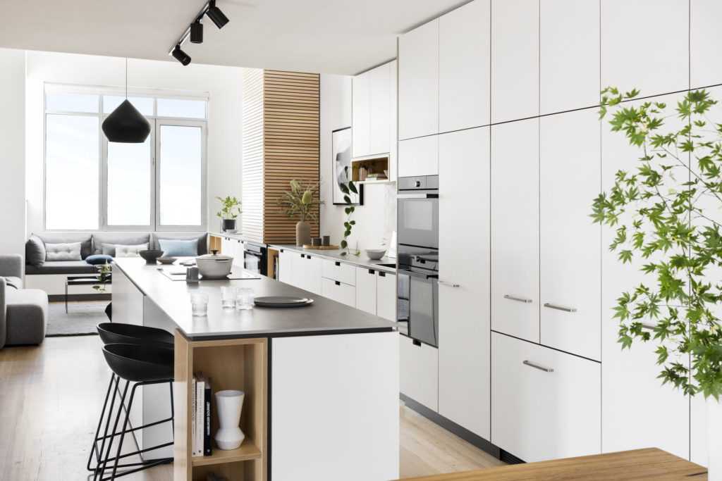 Фэн-шуй позволяет создать прекрасный баланс между закрытыми кухонными шкафами и открытыми стеллажами. Для тех, кто чувствует, что они менее организованы, матовое стекло является отличным вариантом. Возможно, вы можете добавить выдвижные ящики, плавающие модульные блоки, а также убедиться, что пространство хранения улучшено без ущерба для квадратных метров.