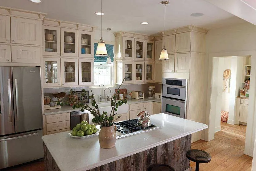 - Белый и бежевый цвета — символ чистоплотности, свежести и везения. Подойдут для минималистических и классических кухонь, а также стиля прованс. Светлыми цветами оформляется не только отделка, но и мебель, текстиль, аксессуары.