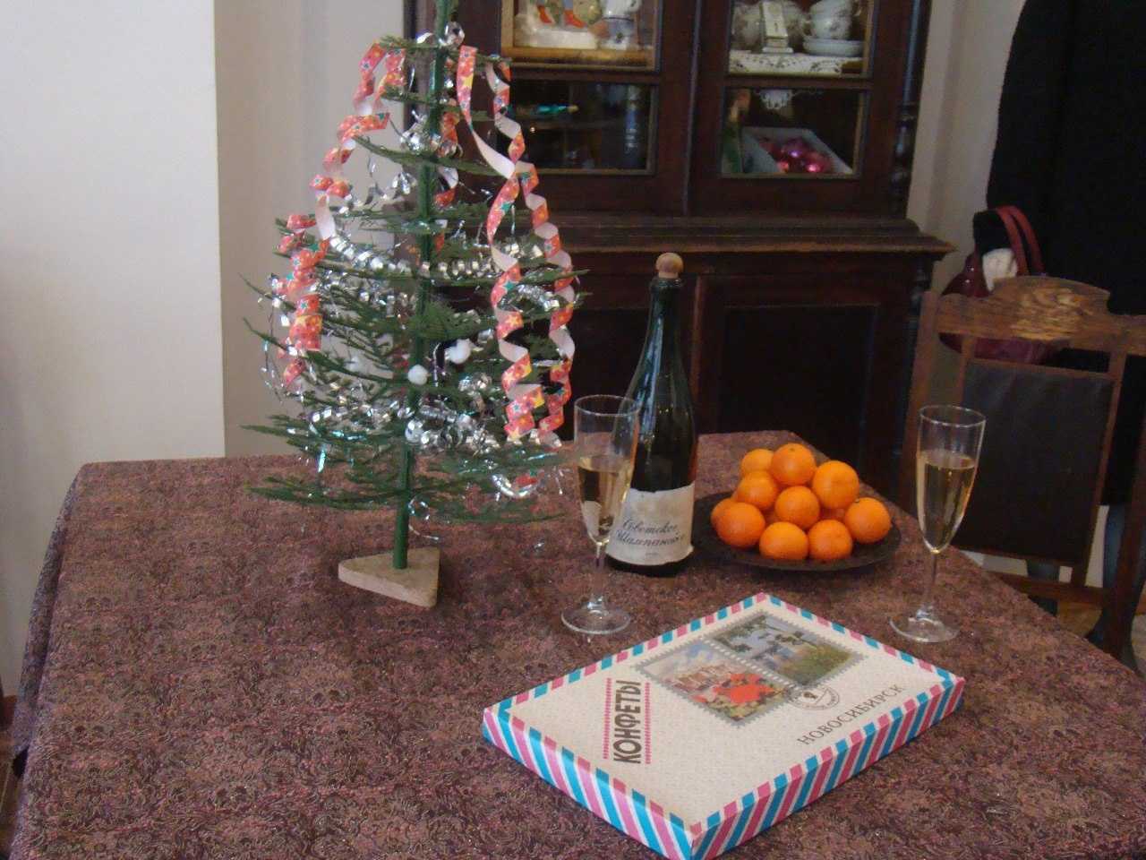 Несмотря на разнообразие угощений, по сей день практически на каждом новогоднем застолье в России можно увидеть оливье, селёдку по шубой или мимозу. Эти сытные салаты из простых продуктов во времена Советского Союза прочно вошли в жизнь народа и стали традиционными блюдами. В прошлом веке к главному зимнему празднику часто фаршировали птицу, варили заливное из мяса или рыбы. Некоторые люди подавали многочисленным гостям бутерброды с икрой или бюджетный вариант – со шпротами. Ни один русский человек сегодня не сможет представить Новый год без шампанского и мандаринов, хотя никто уже не помнит точно, как появилась эта традиция.