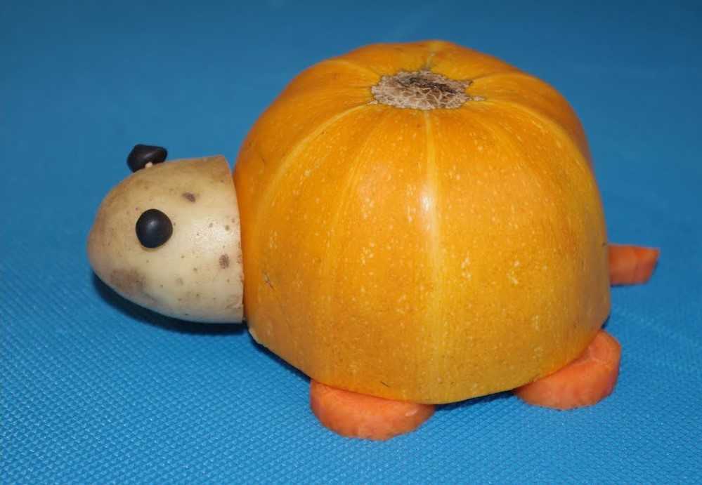 Из больших и маленьких кабачков можно сделать еще один достойный экспонат осенней выставки — черепашку.