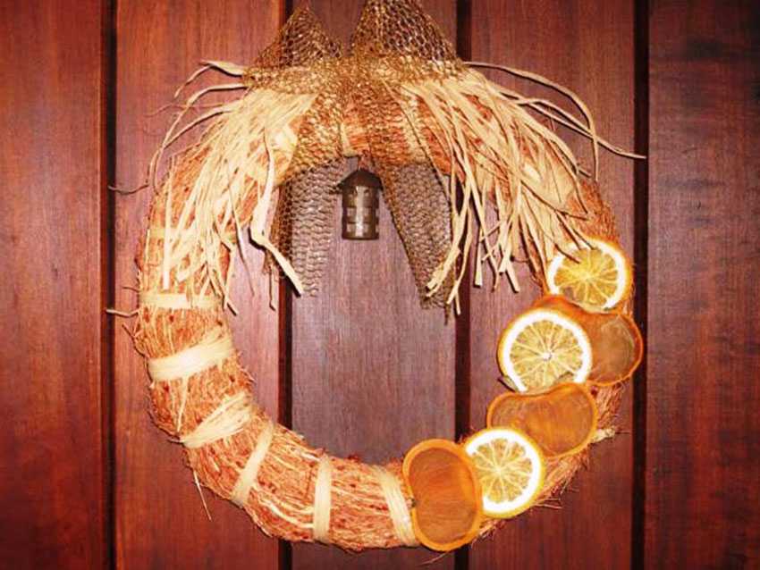 Хорошим подарком может стать в рождественские праздники венок, сплетенный из соломы и украшенный фруктами и сладостями. Сделать его можно своими руками. Вместе со сладостями, в качестве которых для украшения венка берут пряничные фигурки и золоченные орехи, можно сделать в него вкрапление из маленьких свечей и вплести алые ленты. Такой венок является символом вечной жизни.