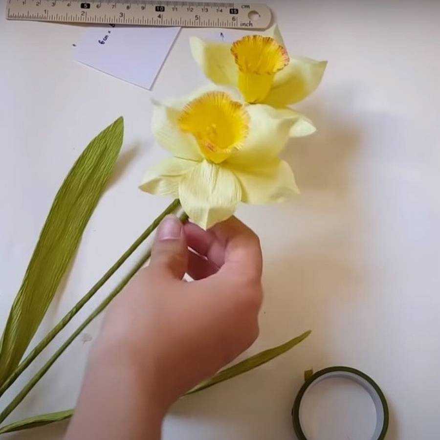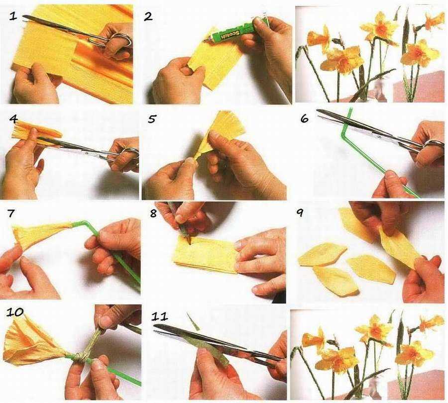 Нарцисс, один самых простых цветков, который можно сделать своими руками. Использование гофрированной бумаги придаст им удивительно натуральный вид.