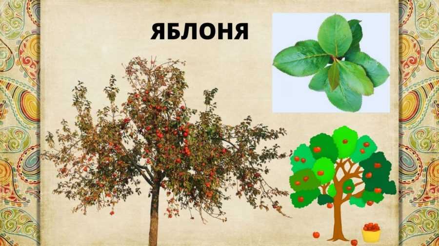Детям нужно объяснить, что, помимо лесных видов, существуют лиственные фруктовые деревья. В наших краях выращивают: