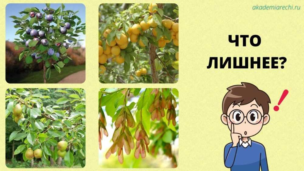 Отличная игра для закрепления знаний — «Найди лишнее». Взрослый раскладывает по 4 изображения, а ребенок пытается угадать лишнее растение. Например: