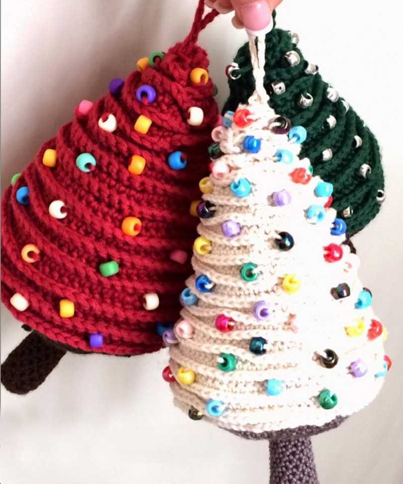 Вот еще варианты красивых елочек, сплетенных из бисера.