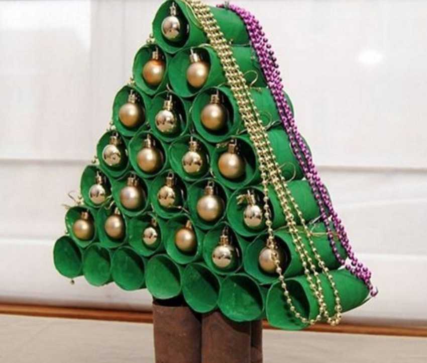 Далее идут ещё более интересные елочки, потому что для их изготовления используются необычные материалы.
