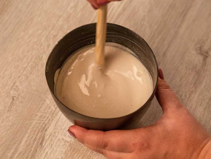 - внутрь горшочка наливаем строительную смесь и устанавливаем елочку, ждем пока схватится;