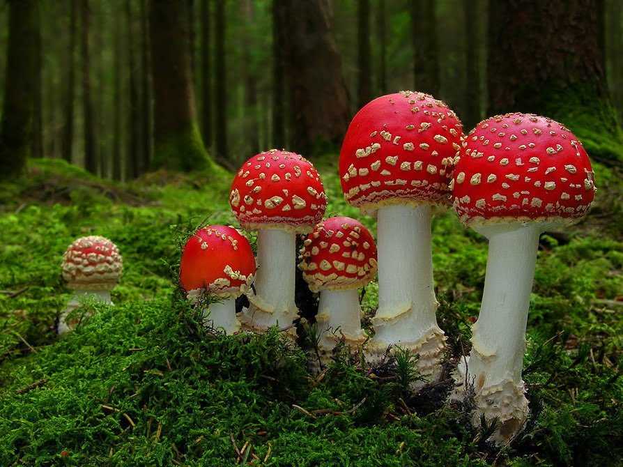 А так красиво выглядят ядовитые грибы-мухоморы. Не стоит класть эти грибы в корзинки и лучше не трогать их руками. Можно просто полюбоваться такой красотой и искать в лесу съедобные грибы. Эти грибы вы должны знать «в лицо» и не собирать в корзинки грибы, если вы сомневаетесь, съедобный это гриб или нет.