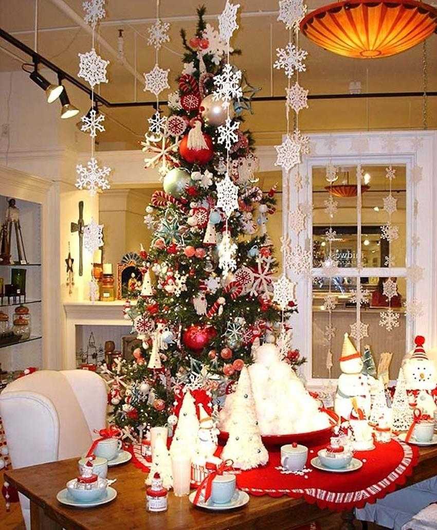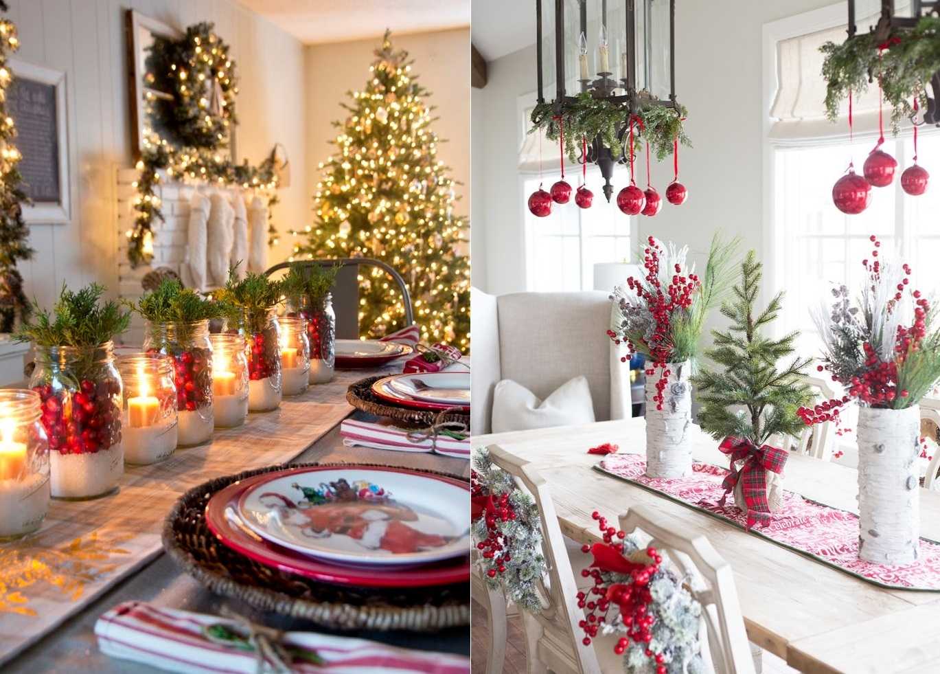 Это рождественское украшение будет отображаться последним. Роль такого украшения вполне под силу сыграть обеденному столу, журнальному столику или даже прикроватной тумбочке. Яркие скатерти, салфетки, канделябры, корзины с фруктами придадут элегантный вид этому предмету интерьера.