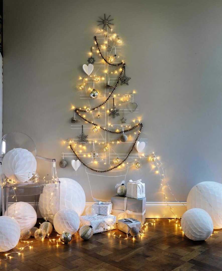 Получается необычно, но оригинально. Особенно актуальна идея при наличии в доме детей и домашних животных. Ещё одна идея экономии места в однокомнатную квартиру – сделать ёлку из гирлянд на стене.