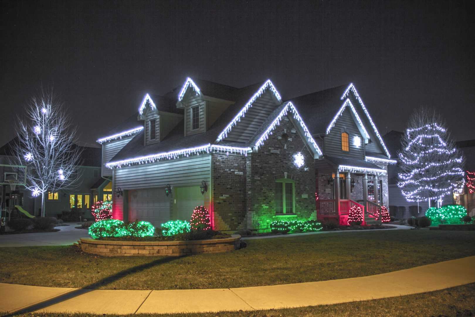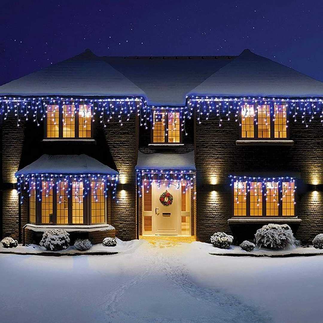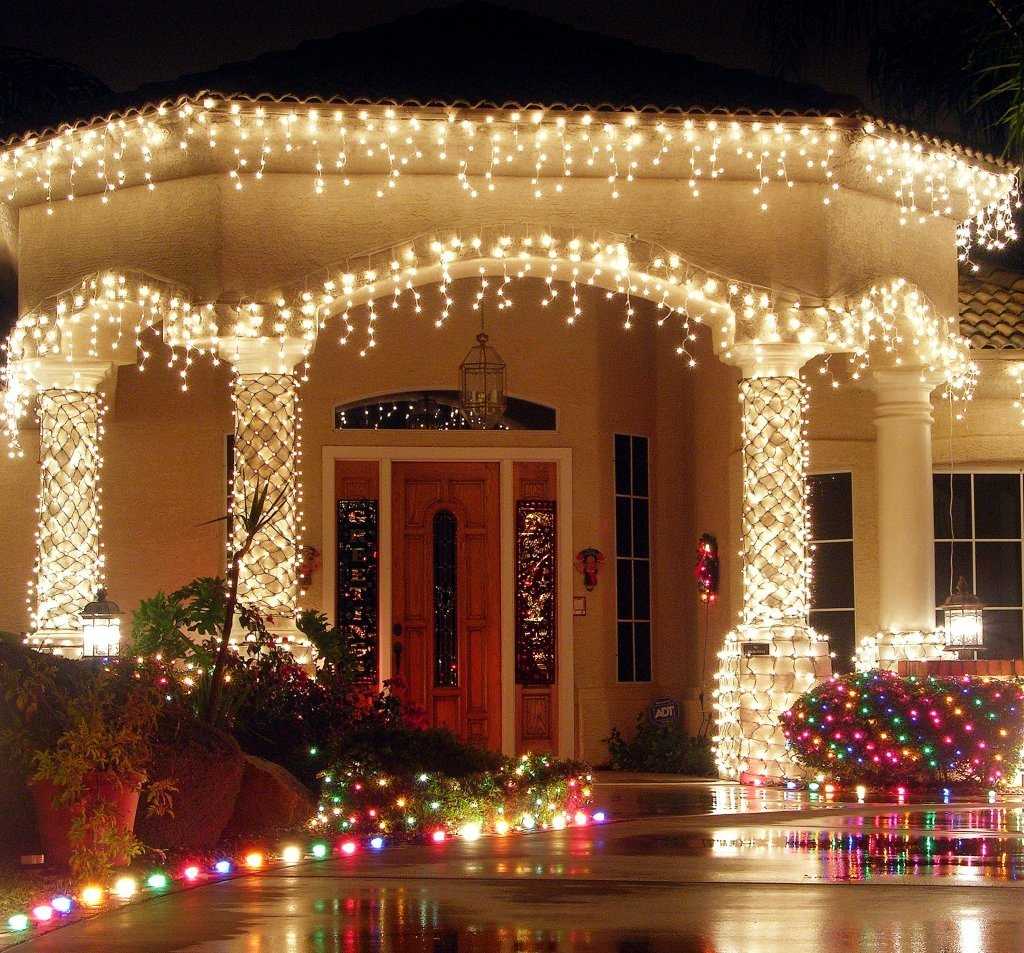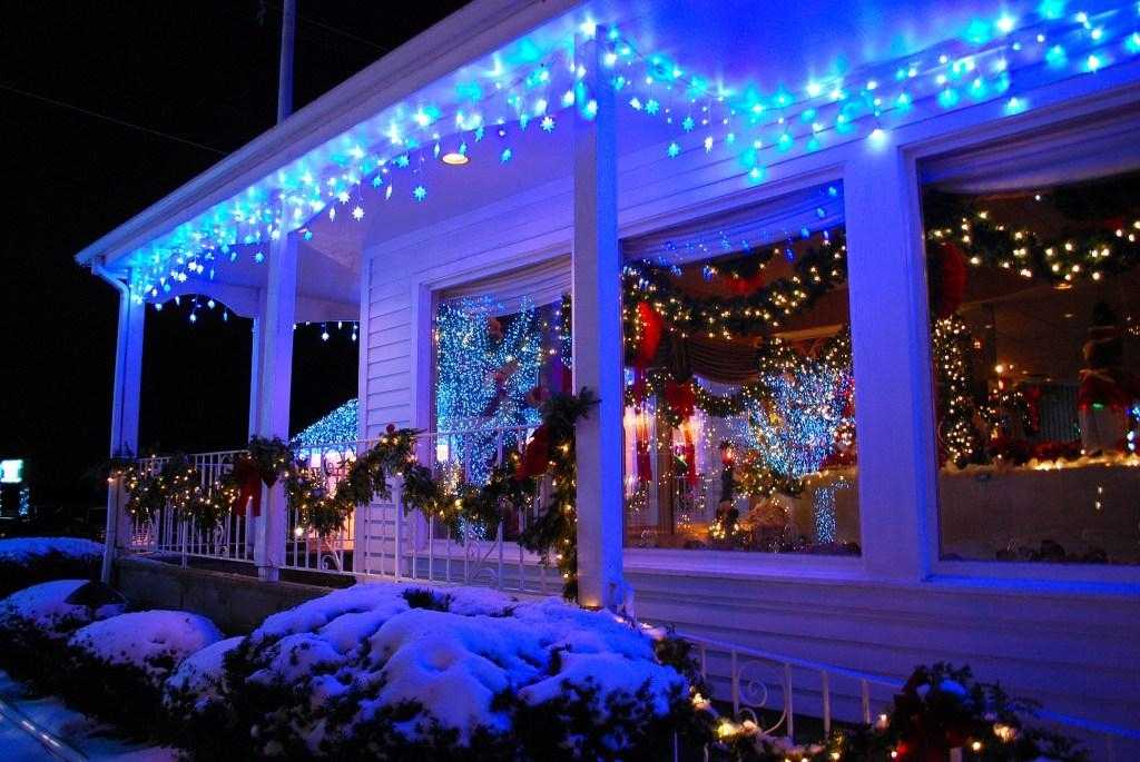 У обладателей частных домов есть дополнительные возможности украсить свою придомовую территорию. Торжественно оформить центральный вход помогут гирлянды, сделанные собственноручно из мишуры, ярких шаров, золотых бантов и прочих украшений. Такой новогодний декор размещают на перилах, обрамляют ним входные двери и различные малые архитектурные формы на придомовой территории. Он прекрасно будет смотреться в дневное время. Для того, чтобы уличный новогодний декор для дома имел эффектный вид и в новогоднюю ночь, можно приобрести различные светодиодные гирлянды, которые создадут потрясающе сказочную атмосферу. Ими также украшают периметры оконных проемов, крыши, заборы, дорожки, расположенные на участке деревья, кустарники и прочее.