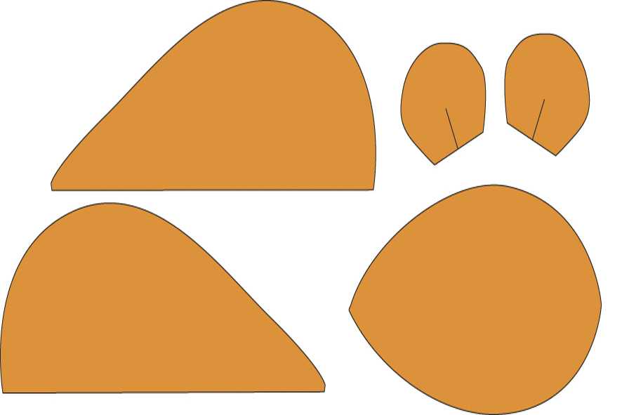 - Сшейте между собой детали головы и лап, неплотно наполните поролоном или синтепоном, также подойдет вата, если ничего больше не оказалось под рукой. Таким же образом сотворите хвост, только его наполнять не нужно.