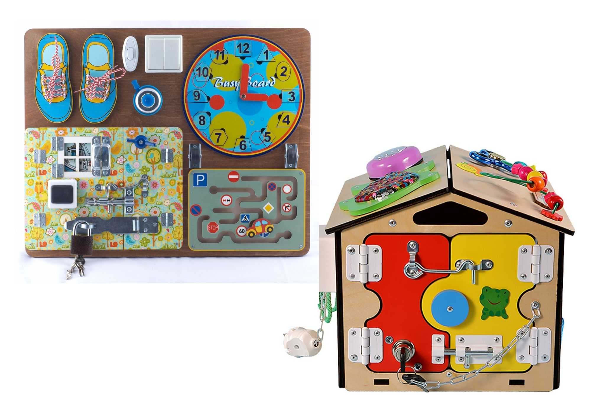Каждому малышу интересны бытовые предметы, которые его окружают. Порой они увлекают больше, чем покупные игрушки. Но из соображений безопасности ко многим домашним предметам доступ запрещен. Эту проблему решает игрушка для малышей бизиборд.