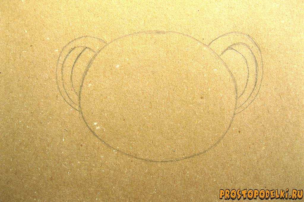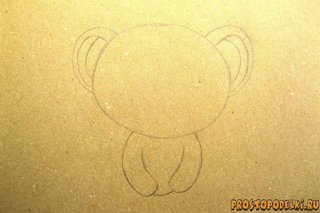 Затем можно приступать к прорисовке тела и ушек этого животного.