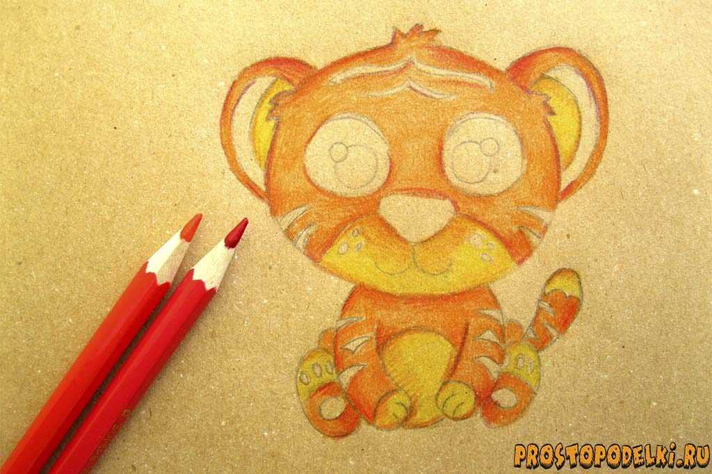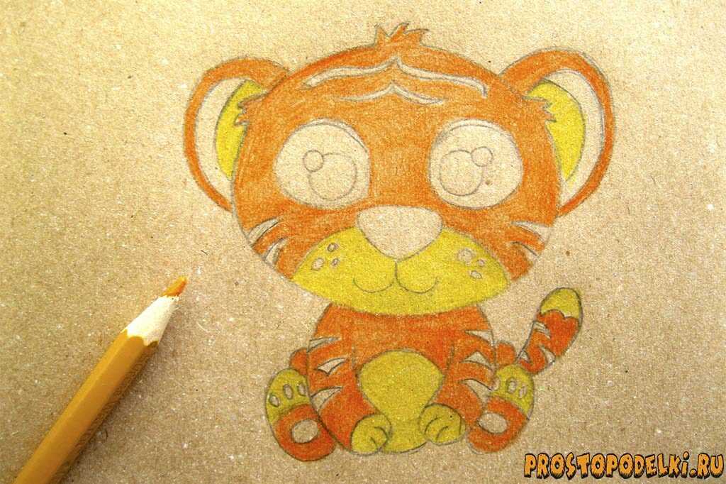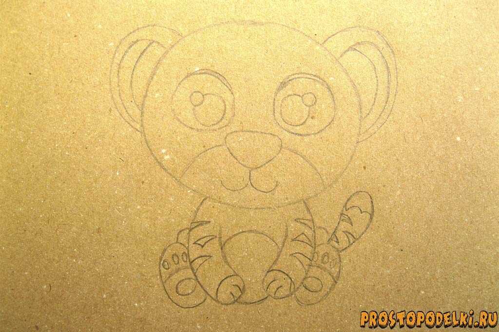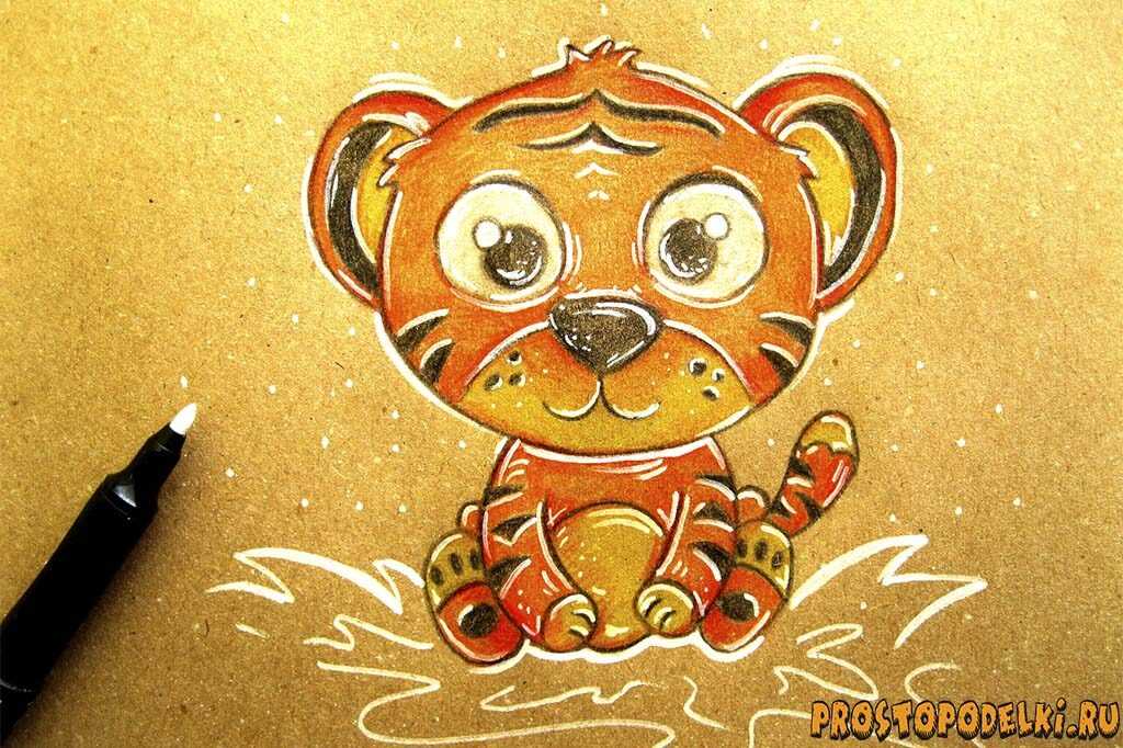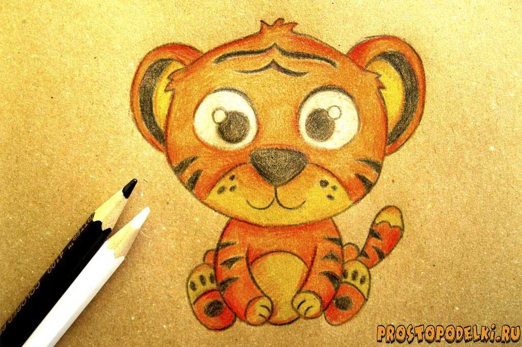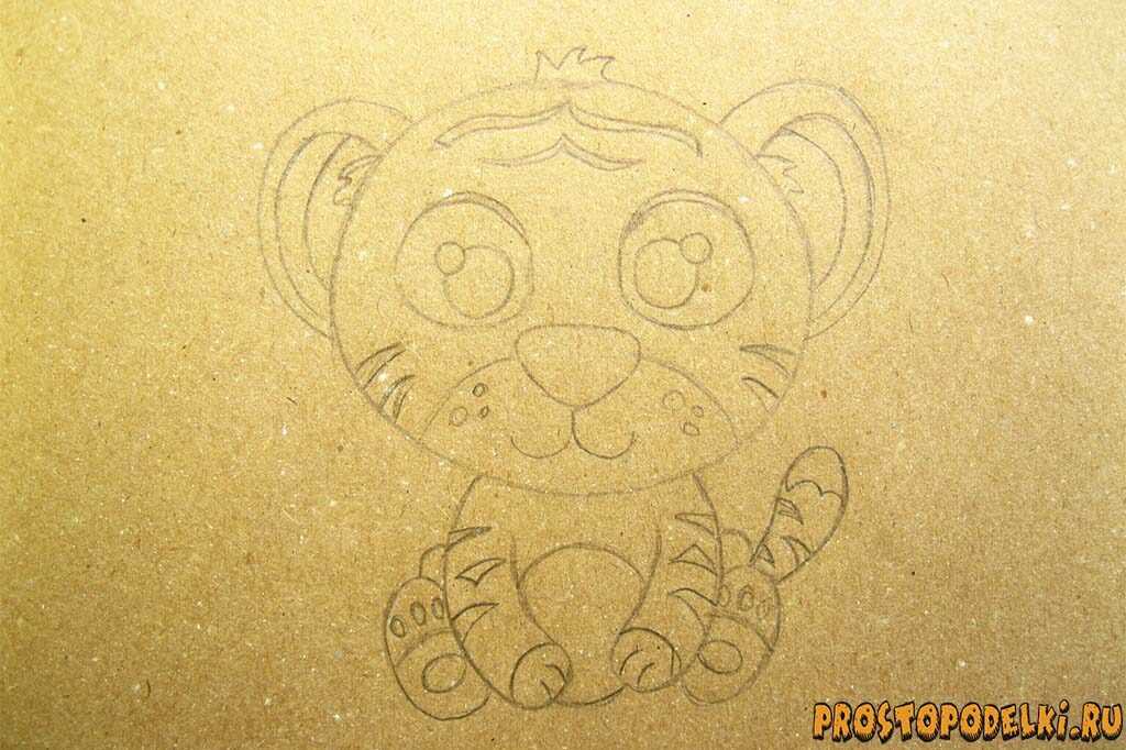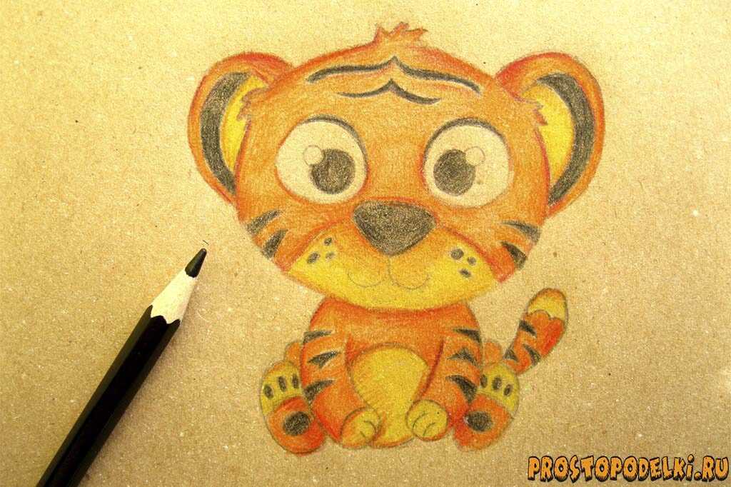 Теперь вы знаете, как нарисовать тигренка карандашом поэтапно. Всего 4 шага и символ года готов!