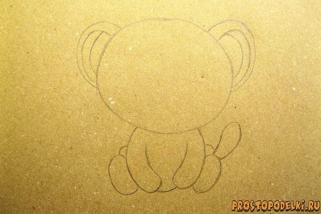 Сделать это можно довольно просто: для этого нужно обвести большой и малый овалы уже с прорисовкой натурального вида частей. Соединить в один контур рисунок – совсем несложно, но сделать это нужно правильно.