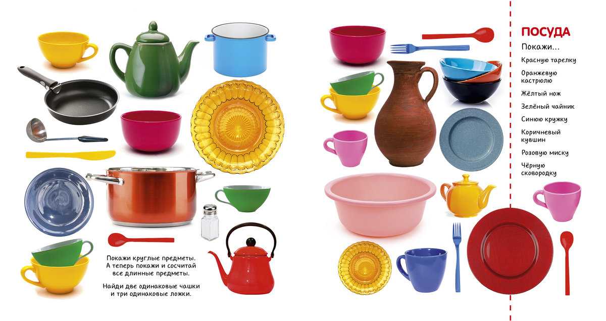 Например, попросите малыша посмотреть на картинки и найти кухонные принадлежности. Перед этим следует уточнить, что кухонная посуда используется для приготовления обедов/ужинов.