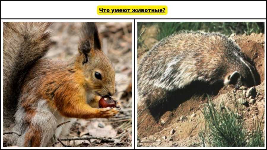 Педагог задает вопрос, например: «Что умеет делать барсук?». Ребенок должен найти соответствующую картинку, развернуто ответить по ней: «Барсук умеет рыть нору».