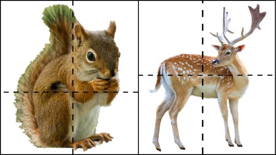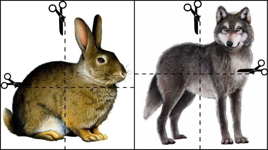 Дидактическая игра обучает навыку складывания целого из частей, развивает мышление, визуальное восприятие, умение сосредотачиваться. Для работы нужны карточки, изображающие диких зверей, произвольно разрезанные на 4 части.
