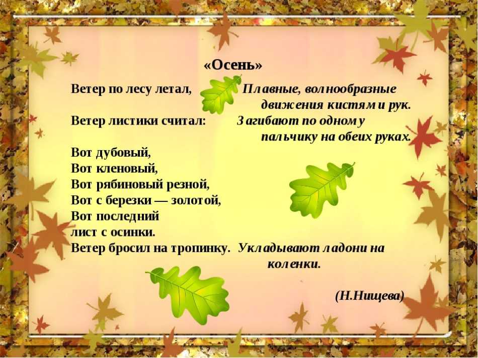 Утром мы во двор идём — Листья сыплются дождём, Под ногами шелестят И летят… летят… летят…