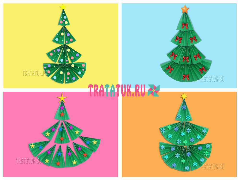 Вот такими елочками в технике скрапбукинга можно будет украшать многие поздравительные идеи новогодних открыток.