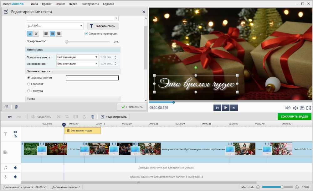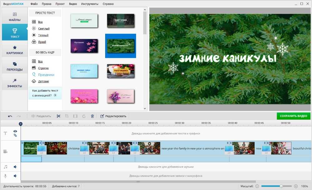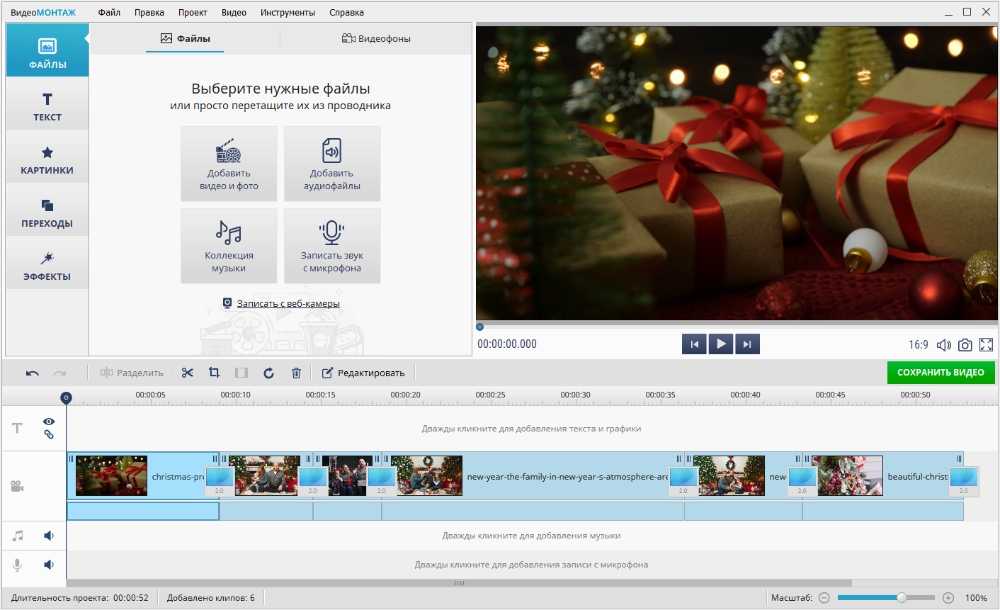 Придумывайте свои яркие оригинальные идеи, снимайте видео и готовьте красивые видео поздравления с наступающим новым годом своими руками. С ВидеоМОНТАЖОМ вы сможете воплотить в жизнь самые смелые задумки! Бесплатно скачайте видеоредактор и начните создавать чудесную открытку прямо сейчас!