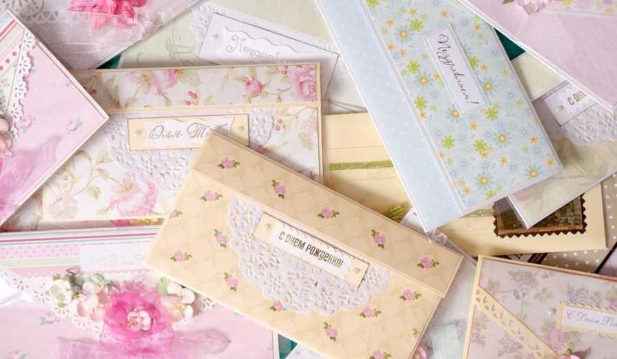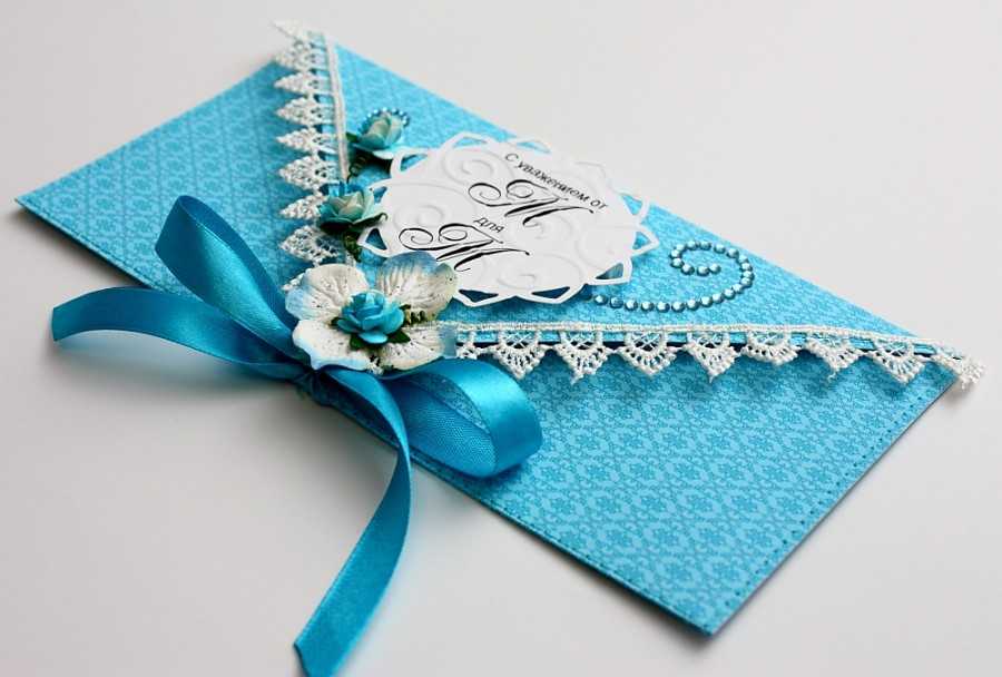 Как научиться делать конверты своими руками мы уже разобрали, вам осталось лишь научиться красиво и изящно его украшать – подбери кружева под края конверта и приклейте их.