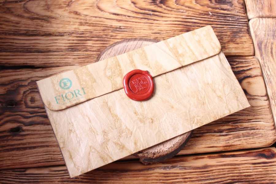 - Получившийся прямоугольный конверт заклеивают стикером, заливают сургучом или обвязывают алой лентой.