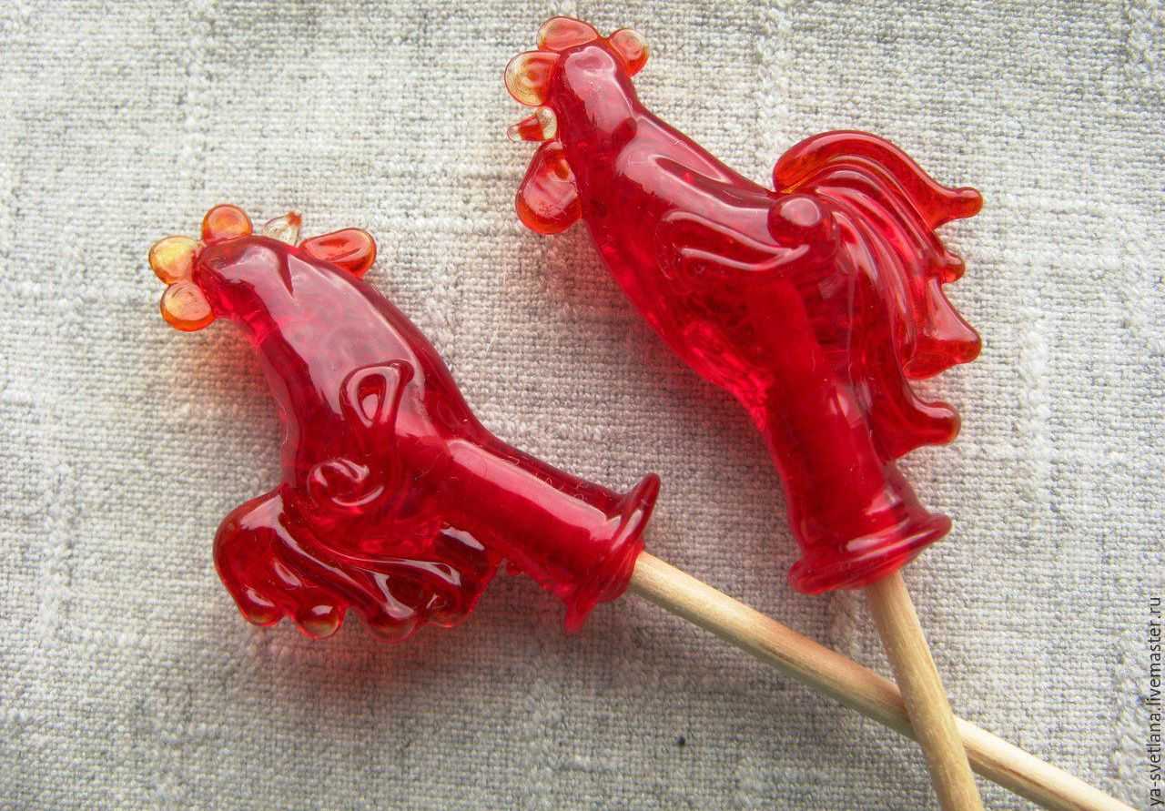Подсластить такой подарок можно сладкими петушками на палочке. У многих форма для них осталась ещё с советских времён.