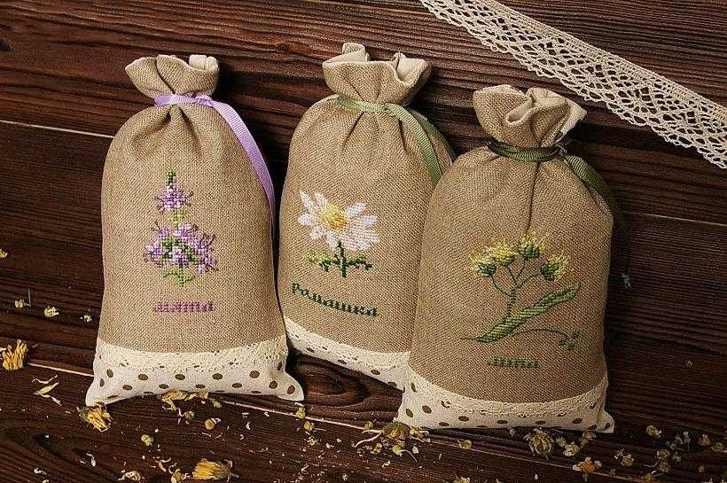 Это маленькие, вкусно пахнущие мешочки – саше, сделать их своими руками на Новый год легко: сшить из плотной ткани основу, украсить ее вышивкой, бусинами или лентами. Затем наполнить разнообразными травами или маслами. Главное, подобрать запах. Свой аромат для каждого мешочка.