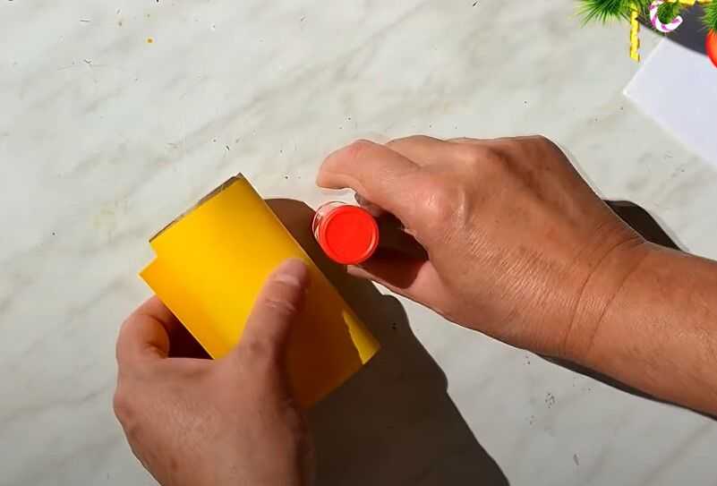 - При необходимости втулку укоротить, обрезав до нужной длины острым канцелярским ножом. Затем оклеить оранжевым листом.