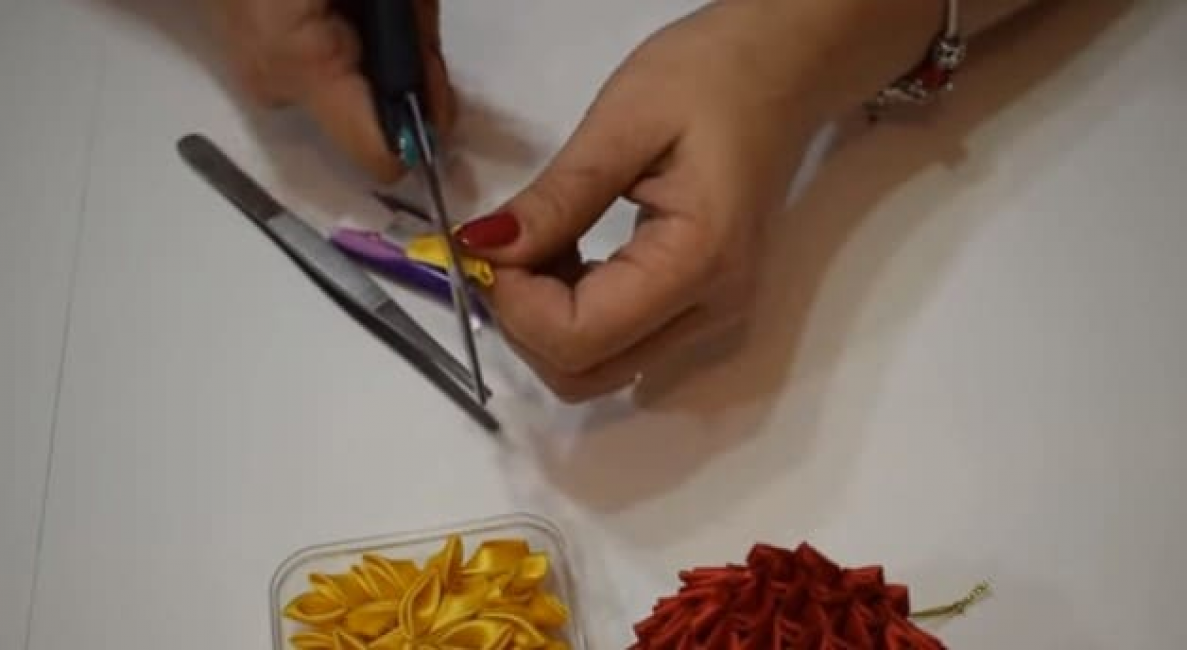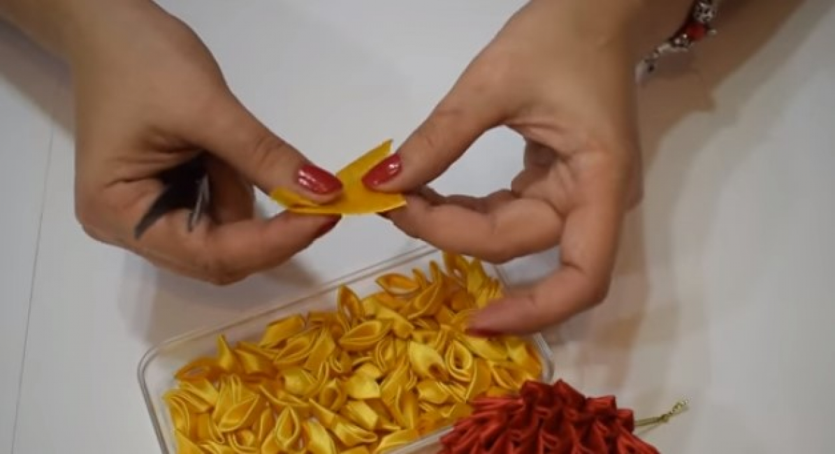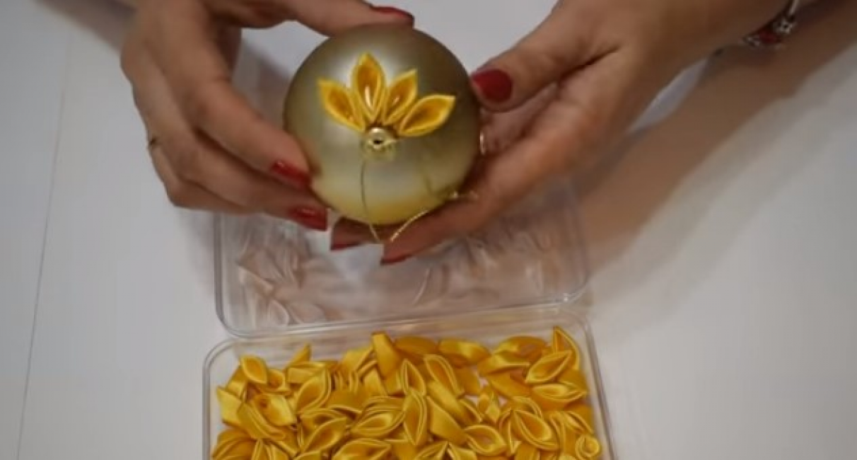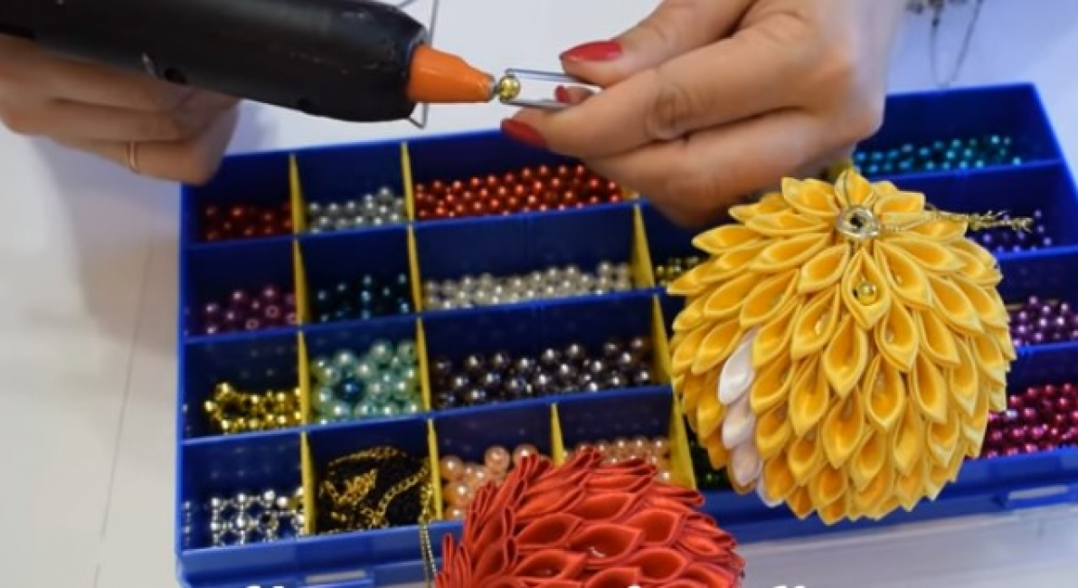 Очень богато и достойно выглядят шары в технике канзаши, да и делаются несложно.