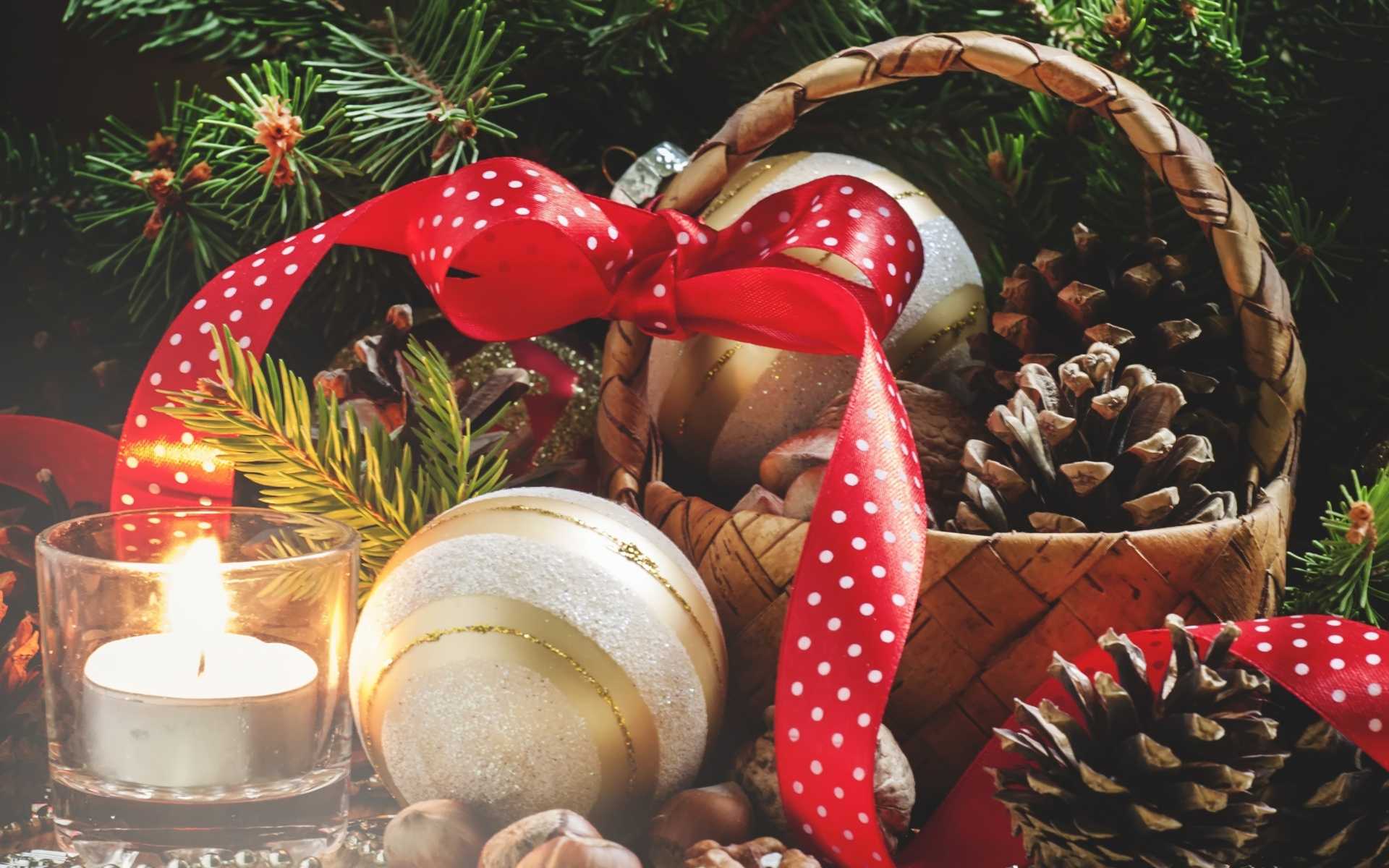 - Красивые натюрморты. Выберите картинку с новогодней композицией, например, с ёлочными украшениями, мандаринами, конфетами и другими вкусностями.