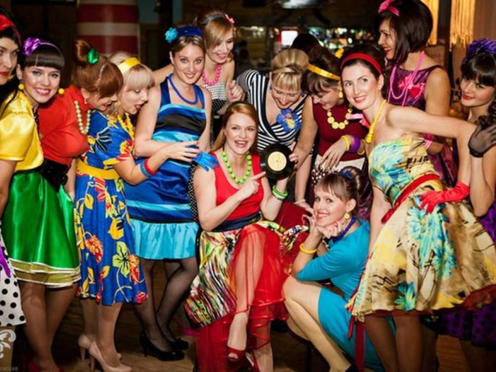 Попасть в круг избранных стиляг непросто, но возможно. Женщинам помогут воссоздать ретро-образ платья всевозможных цветов, юбки мини и колокол, укороченные брюки, костюмы, элегантные шляпки и перчатки, крупные очки, яркий макияж, стрелы, бабетта либо же геометрическая стрижка.