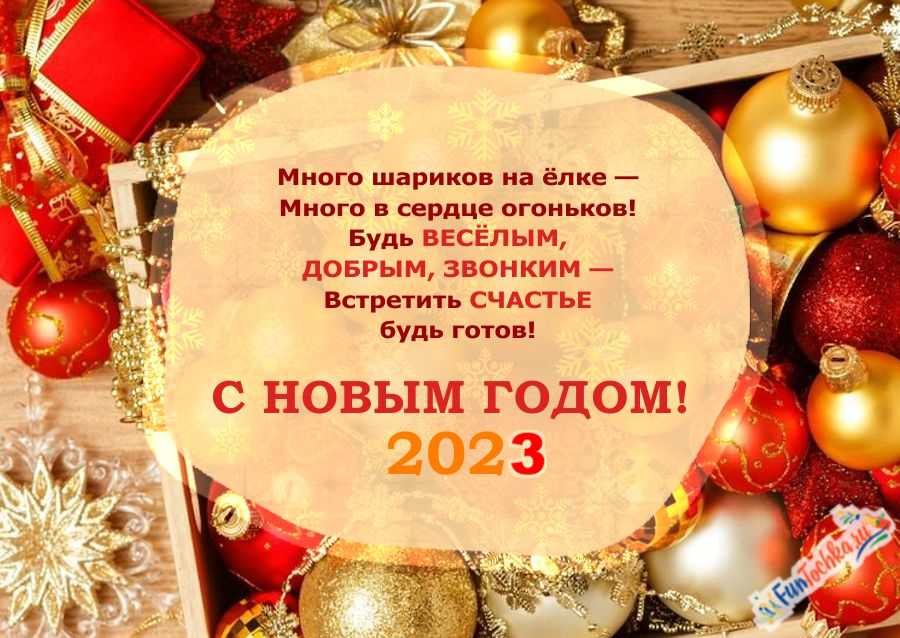 Поздравляю с Новым 2023 годом! Мы гордимся вашим мужеством, силой и мудростью. Пусть Новый год заберет все проблемы предыдущего года и принесет удачу и успех.