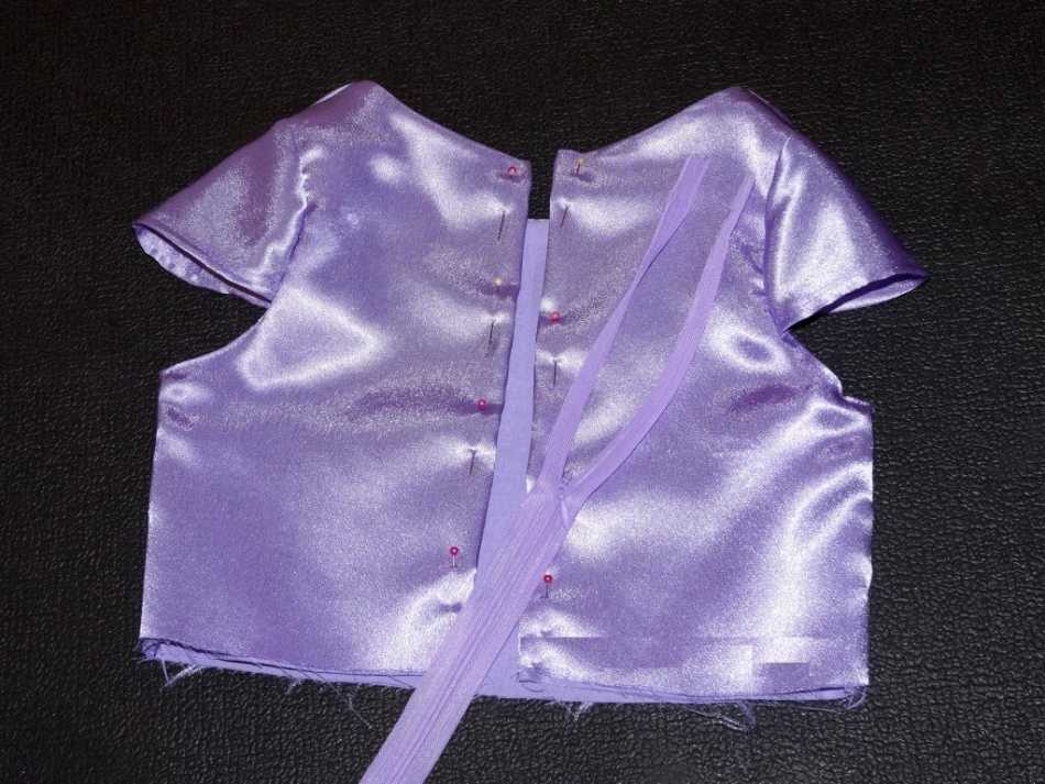 . С помощью швейных булавок закрепите молнию. В последствии, если у вас будет желание, вы можете пришить поверх молнии петельки для корсета
