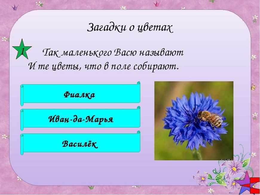 Большинство малышей знает и любит цветы, окружающие нас с самого рождения. Поэтому с удовольствием разгадают и такие zagadka тоже.