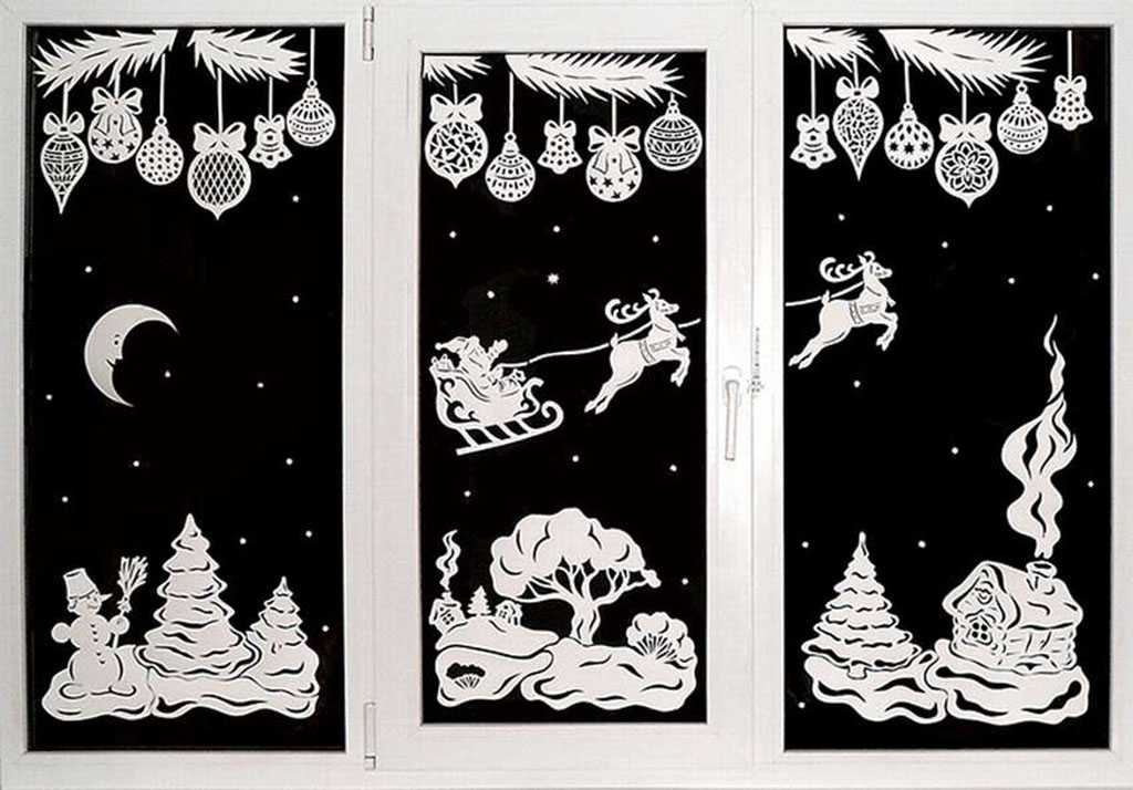 Трафареты на окна на Новый год 2022 – большие шаблоны для вырезания