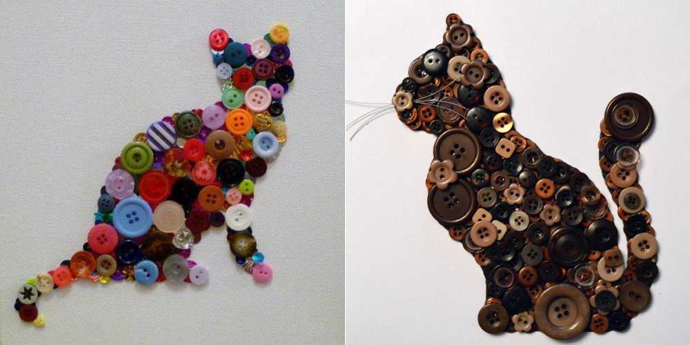 Помимо прочего, пуговичные гламурные иллюстрации также прекрасно пополнят коллекцию новогодних поделок, изготовленных своими руками. Смастерить такую картину можно из деталей различного размера и цвета. Чтобы задобрить дружелюбного и преданного символа предстоящего года, тем самым обеспечив себе его покровительство, нужно основательно подготовиться к приходу наступающего года. Создать же бумажную или тканевую картину помогут воображение, всевозможные грамотно и правильно подобранные бусины, пуговицы, ракушки и разнообразные стразы. Нужно только лишь нарисовать на чистом листе контуры кролика или кошки, а затем заполнить шаблон понравившимися материалами.