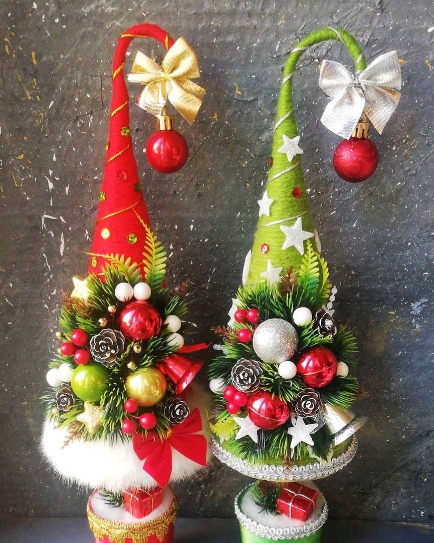 Новогодний топиарий в форме елочек