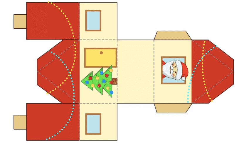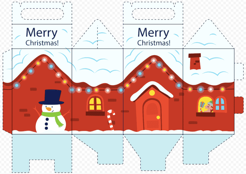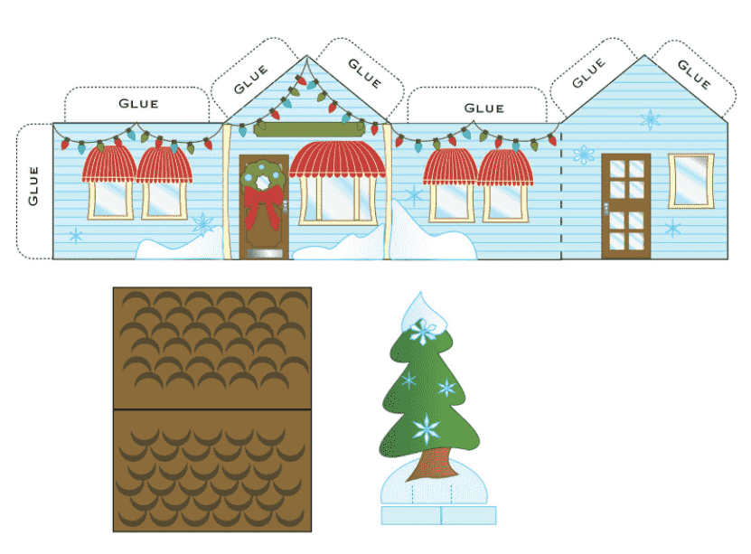 Шаблоны и схемы цветных домов для вырезания из бумаги на Рождество и Новый год 2022